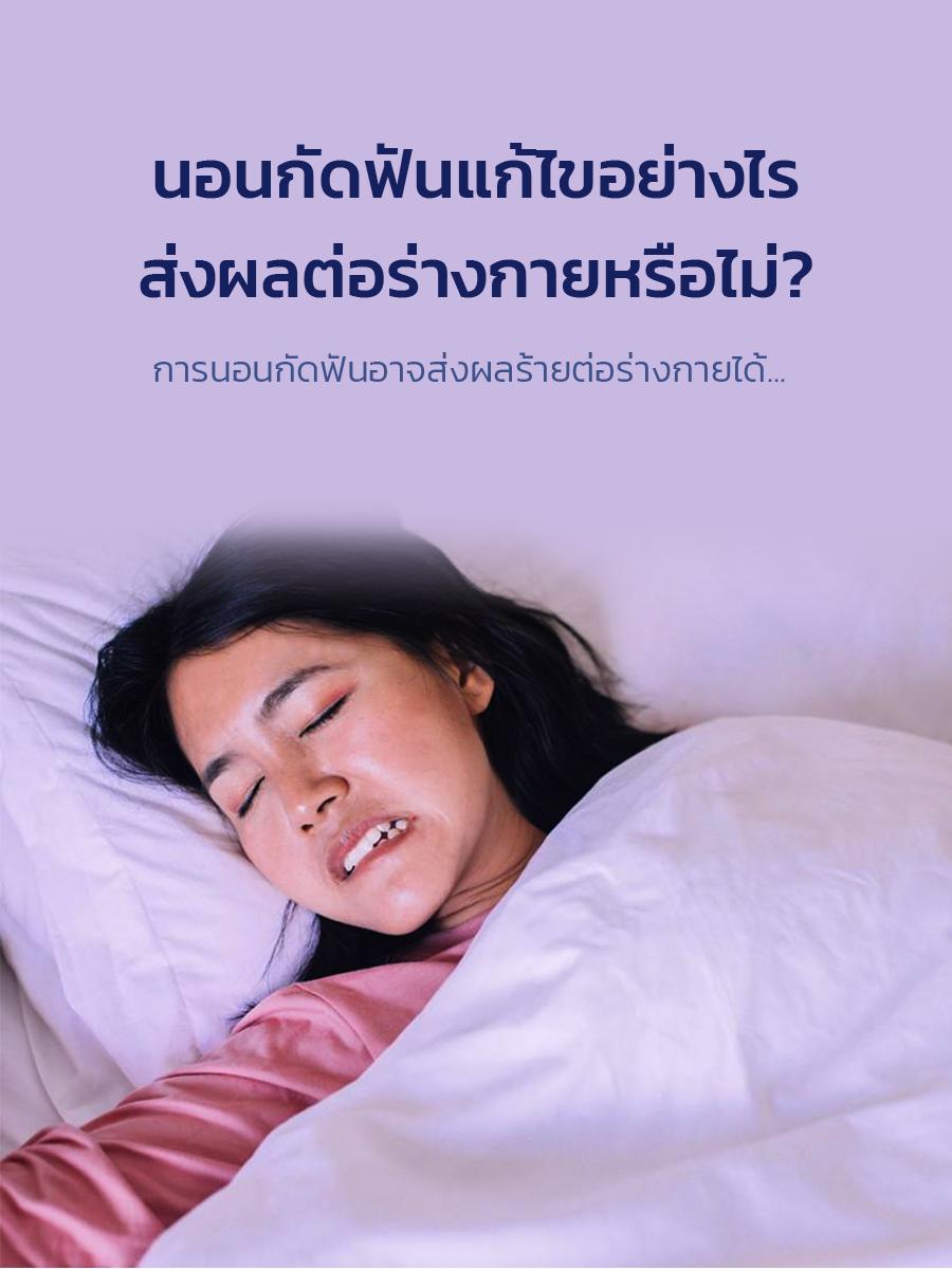 การนอนกัดฟันเป็นปัญหาร้ายแรงที่คุณควรปรึกษาแพทย์ การจัดการกับปัญหานอนกัดฟันต้องอาศัยความตั้งใจจริงจังที่จะเปลี่ยนแปลงตัวเอง ตั้งแต่การละทิ้งนิสัยที่ไม่ดีต่อสุขภาพไปจนถึงใช้วิธีที่ทำให้รู้สึกผ่อนคลายเพื่อให้แก้ปัญหาได้ในระยะยาว คุณจะต้องค้นหาต้นตอของปัญหาสุขภาพ และวิธีแก้ปัญหากัดฟันให้ตรงจุดที่สุด เพื่อสุขภาพการนอนที่ดีอย่างยั่งยืน