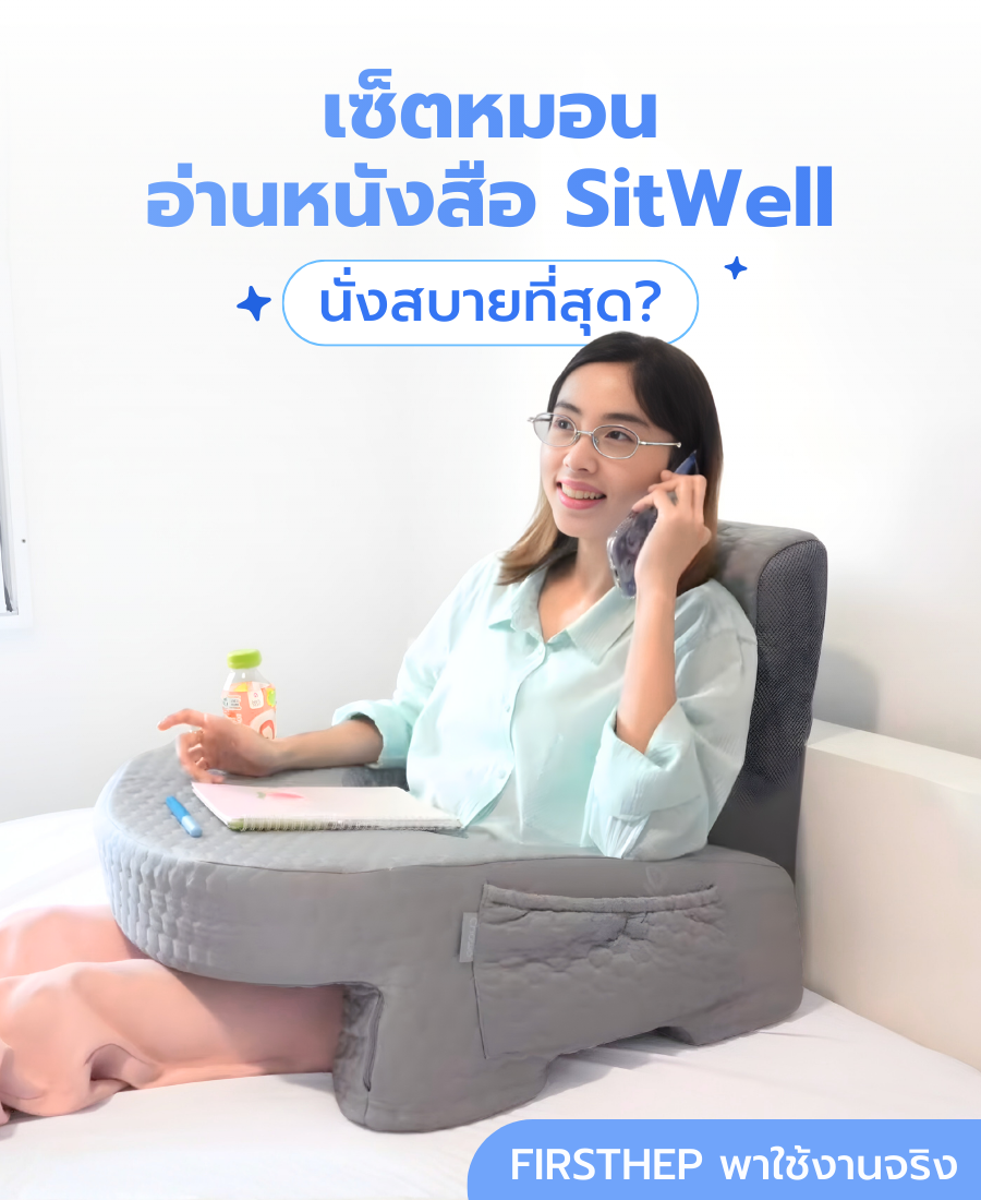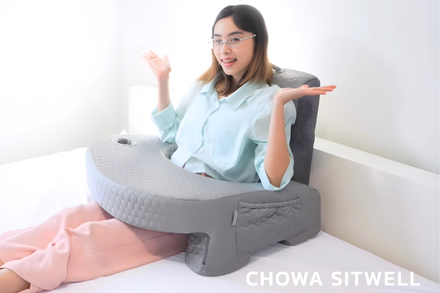 เซ็ตหมอนอ่านหนังสือ SitWell จากแบรนด์ Chowa หมอนเซ็ตนี้ถูกออกแบบมาเพื่อช่วยปรับท่านั่งให้ถูกต้องตามหลักสรีรศาสตร์ ลดอาการปวดหลัง คอ บ่า ไหล่ และแขนด้วย