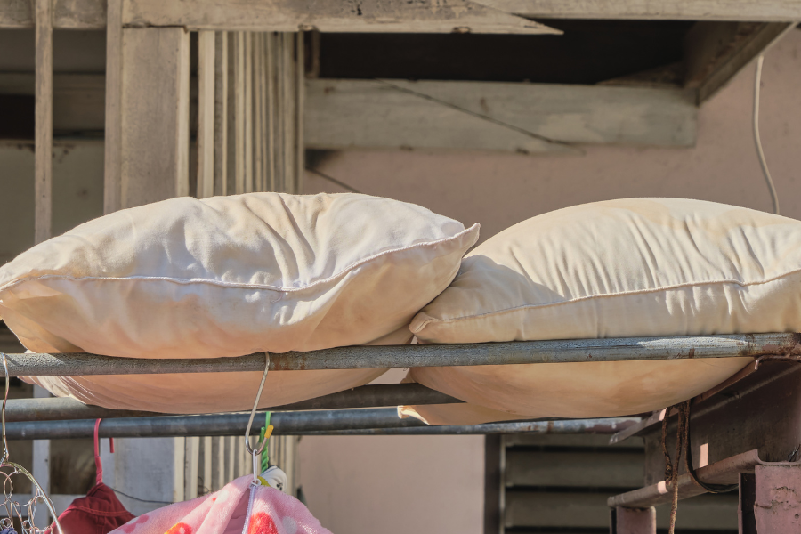หมอนที่ใช้เป็นเวลานานมักมีคราบเหลืองจากเหงื่อ และอาจเริ่มมีกลิ่นอับ ซึ่งเป็นสัญญาณของการสะสมแบคทีเรีย ไรฝุ่น และเชื้อรา สิ่งเหล่านี้เป็นตัวกระตุ้นให้เกิดปัญหาผิว เช่น สิว หรือผื่นแพ้ และยังส่งผลต่อระบบทางเดินหายใจได้ด้วย หากซักปลอกหมอนแล้วยังไม่ช่วย แสดงว่าปัญหาอาจอยู่ภายในตัวหมอน ควรเปลี่ยนใหม่ทันที