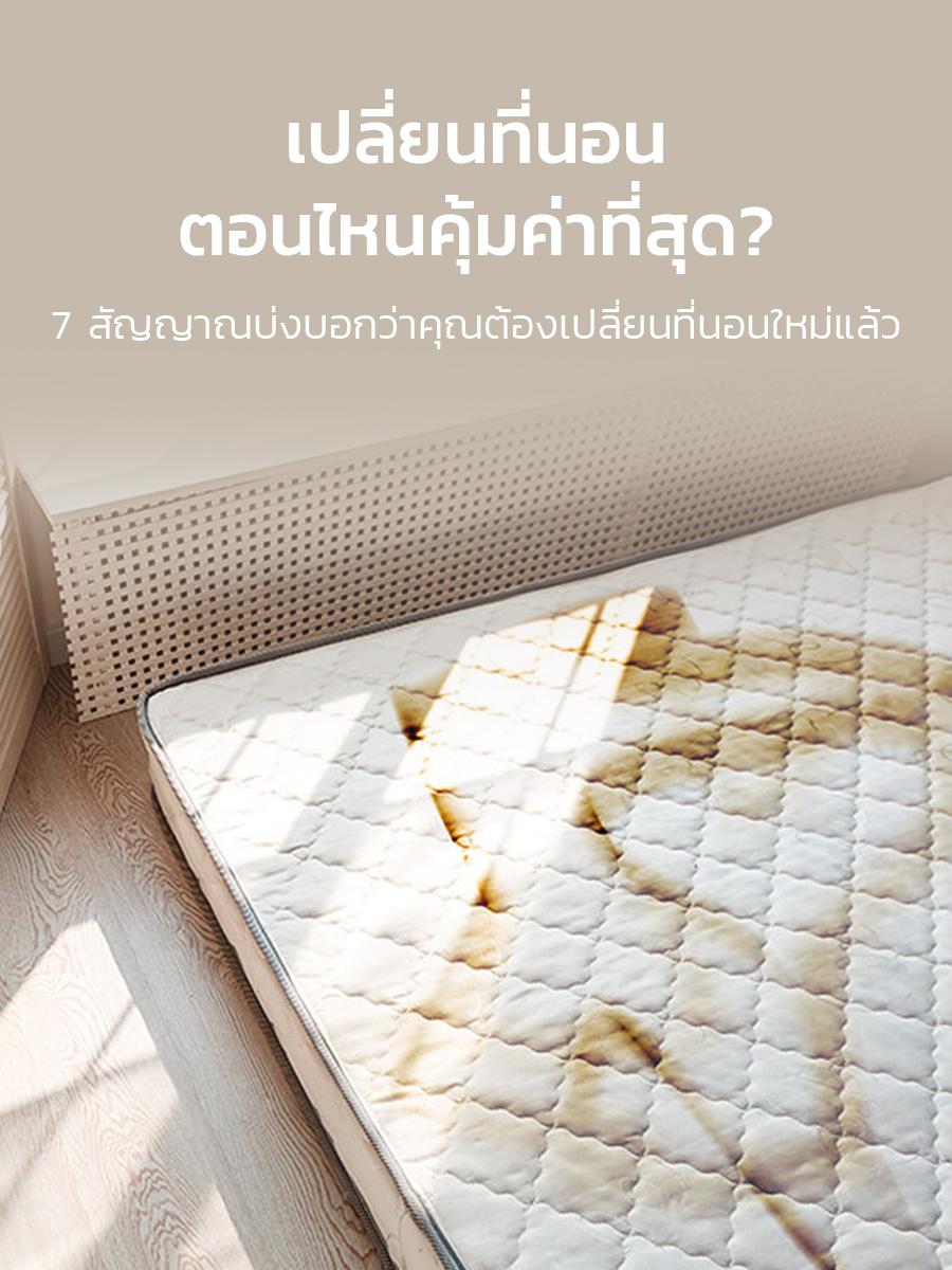 การพักผ่อนที่ดีที่สุดคือการนอนหลับ ฉะนั้นคงไม่ใช่เรื่องดีแน่หากที่นอนของคุณไม่ได้คุณภาพ นอนแล้วรู้สึกปวดหลัง ทำให้หลับไม่สนิท ส่งผลให้สุขภาพจิตเสีย สุขภาพร่างกายแย่ แต่เชื่อว่าหลายคนไม่รู้ว่าจะต้องเปลี่ยนที่นอนตอนไหนดี แถมยังขี้เกียจซื้อใหม่เพราะที่นอนเดิมก็ยังสามารถนอนได้อยู่ ทั้งนี้ อย่าชะล่าใจและลองมาดู 7 สัญญาณบ่งบอกว่าคุณต้องเปลี่ยนที่นอนใหม่สักที!!